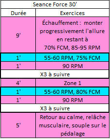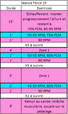 Le but dans cette séance vise à gagner en force pour emmener le braquet, à économiser ses capacités cardiovasculaires, et à améliorer les démarrages.