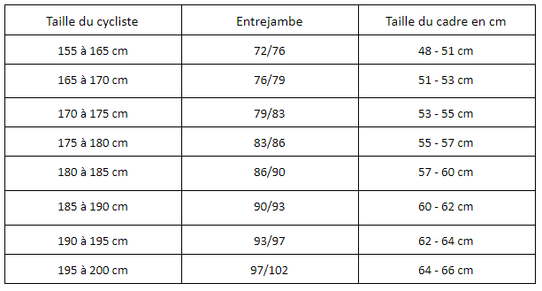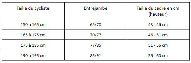 Longueur de votre entrejambe x 0,660 = taille du cadre idéal en centimètres